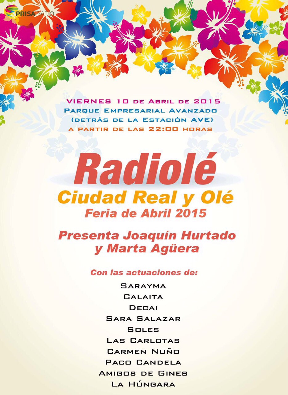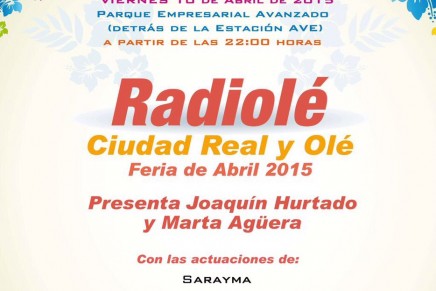 Este viernes 10 de abril a las 22h nos vamos de fiesta a Ciudad Real!! Joaquín Hurtado y Marta Agüera van a presentar un concierto increíble con los mejores artistas de Radiolé. Aquí tenéis el cartel completo. Y por supuesto ES GRATIS!