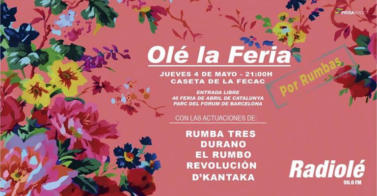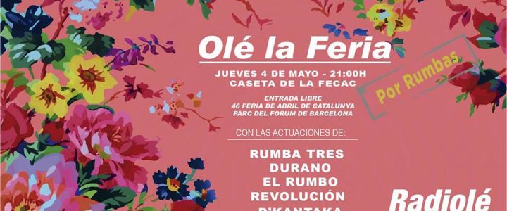 Tras esa primera cita, Radiolé y la FECAC dedican este jueves 4 de mayo una noche de rumba con la participación de grupos tan destacados como RUMBA TRES, que en la actualidad han vuelto a grabar un nuevo trabajo versionando y actualizando sus grandes éxitos. El dúo DURANO con varios años a sus espaldas luchando por una manera muy particular de entender la canción melódica y rumba romántica, han vuelto este año con “Sin Piedad” un avance del que será su nuevo disco y que ya está sonando en Radiolé. Lo mismo ocurre con EL RUMBO, la banda liderada por Jero, que con su primer disco ya se está dando a conocer entre los oyentes de la emisora.