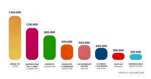 Datos que nos hacen muy felices y nos reconforma sobre todo en un año en el que como dice Pimpinela «se detuvo el tiempo». El equipo de Café Olé trabaja cada día para conseguir que la alegría siga entrando en cada casa, en cada hogar en cada puesto de trabajo, en cada coche… Hemos aumentado las formas de escucharnos: además de la radio de siempre también puedes seguir a emisora a través de la aplicación (nuestro Radiolé de bolsillo), el player de la web y ¡la tele! porque como sabéis desde antes de verano también se puede escuchar Radiolé y por supuesto Café Olé desde nuestro canal de la TDT.