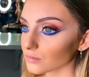 “Con el COVID, es tendencia destacar lo ojos, darles vida, ya sea con sombras o con una buena mascara de pestañas… Me encanta jugar con los colores. A mí me encanta contrastar los colores pálidos con fríos en los párpados superior e inferior”.