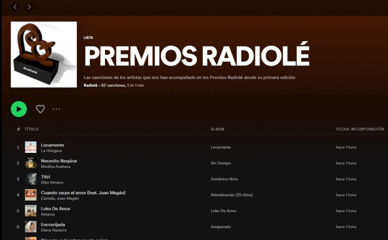 Disfruta de la mejor música, cada día en tu emisora de siempre, Radiolé, la más alegre… y la que te acompaña en los mejores momentos de tu vida. Y, descubre en Spotify, la playlist con las canciones de nuestros Premios Radiolé.